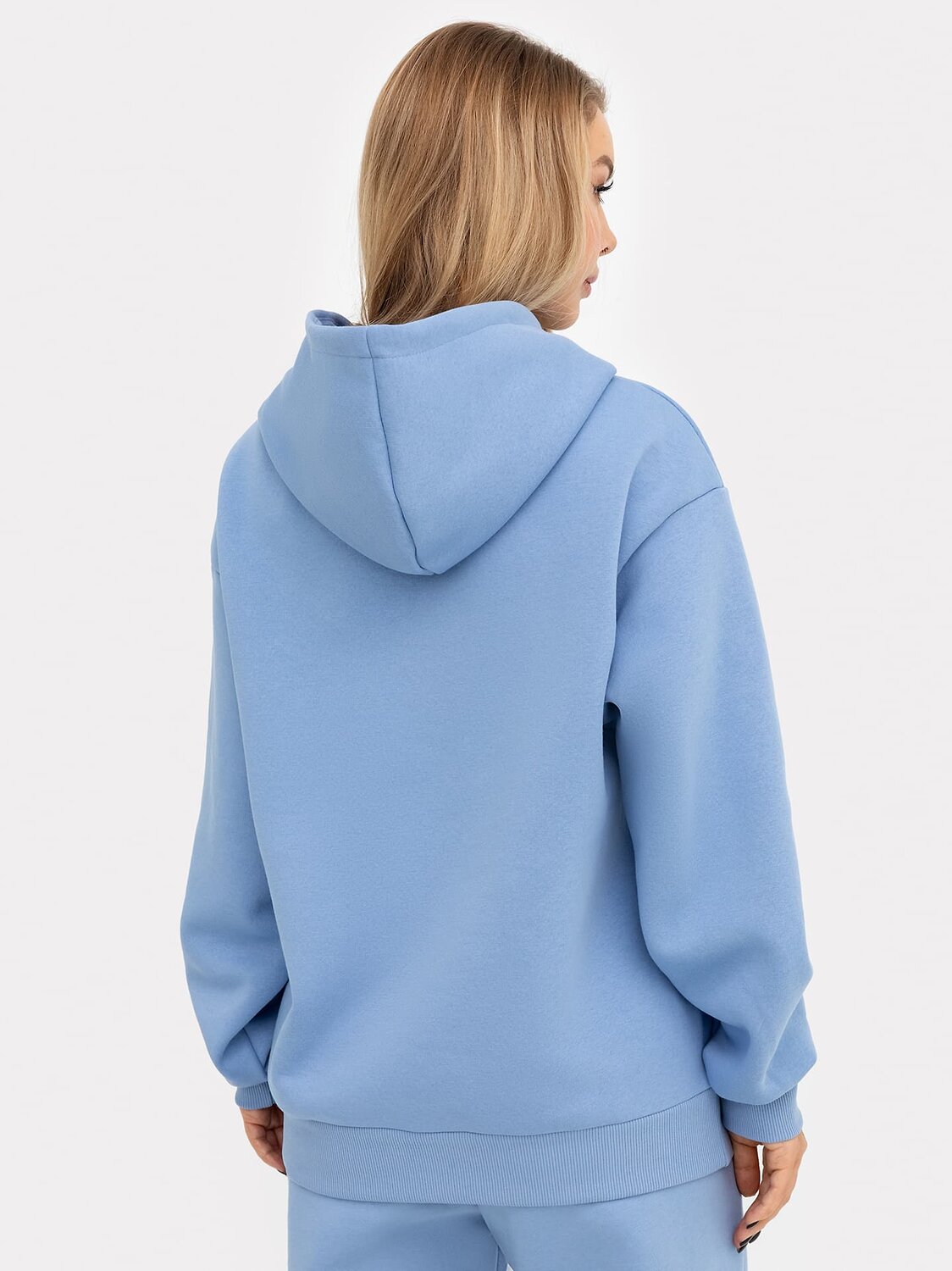 Худи свободного оверсайз-силуэта, выполненное из трикотажного футера с теплым подчесом. Приспущенная линия плеча, просторный капюшон и длинные широкие рукава на манжетах дарят свободу движения и уют. В боковых швах, смещенных в сторону переда, обработаны карманы. Отличное худи для занятий спортом и повседневного ношения. Рекомендуем!