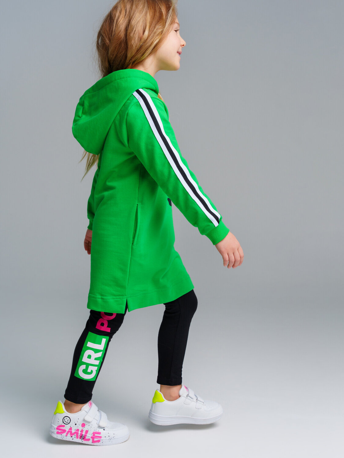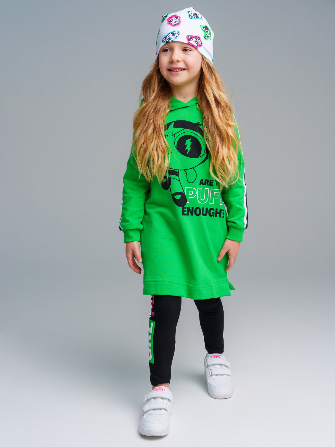 Платье из french terry с капюшоном. Манжеты в эластичный рубчик.