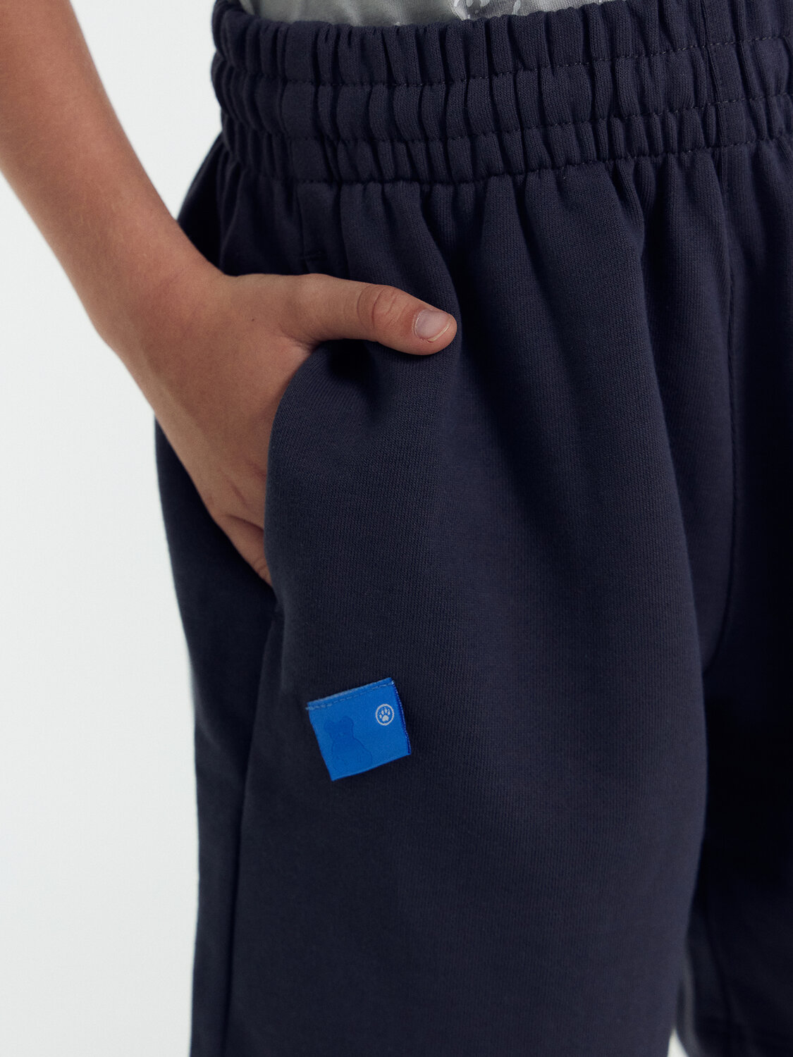 Шорты для мальчиков прямого силуэта из трикотажного полотна футер 3-х нитка без подчеса, 100% хлопок, 350гр. 195см. F3-14, F3-001.01.350. и кулирки 100%хлопок, 160гр., 180см., SJ-2, SJ-001.01.160. Пояс цельнокроенный с эластичной тесьмой внутри, по поясу проложены отделочные строчки. На поясе пробиты петли и вставлен шнур круглый двойной 8мм. 8КXWС-1 с термоусаживаемой трубкой на конце. Карманы в боковых швах, с покдладкой из кулирки. Длина шорт выше колена."