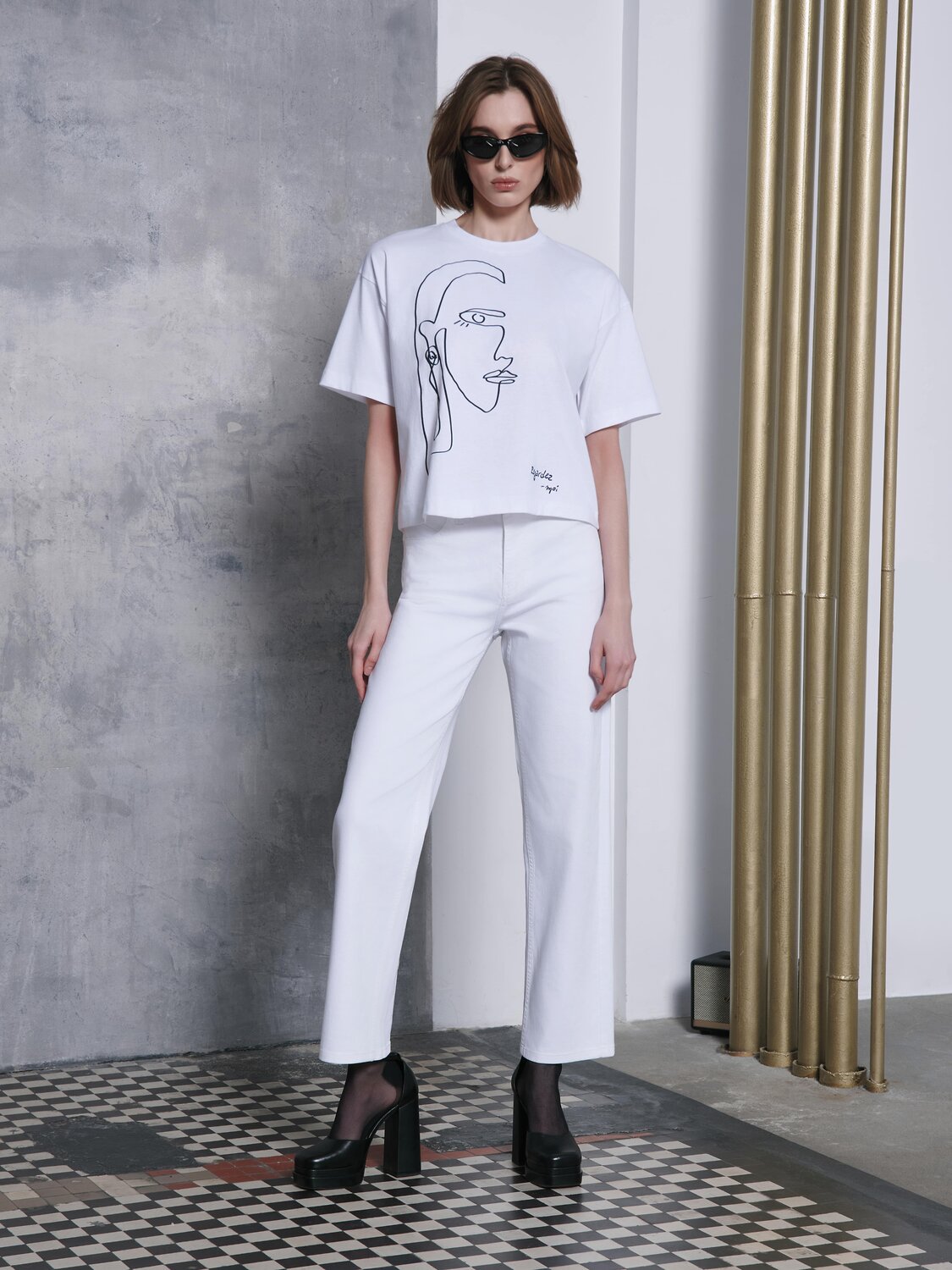 Классические белые джинсы straight подойдут девушкам с разными типами фигуры: благодаря высокой посадке, прилеганию в области бедер и прямому крою штанин модель отлично подчеркивает силуэт. • высокая посадка, подчеркивающая талию• straight• застежка на пуговицу и молнию, скрытую планкой• модель с четырьмя карманами• шлевки для ремня• мягкий хлопковый деним премиального качества• для сохранения белого цвета соблюдайте рекомендации по уходу• джинсы, с которыми так легко создавать образы на каждый день. Рост 164: длина по внутреннему шву 72 см.Рост 170: длина по внутреннему шву 77 см.