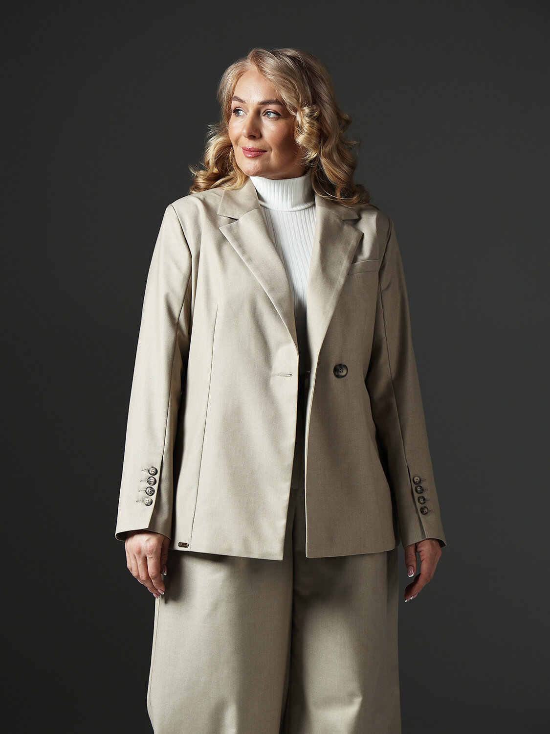 Костюмный жакет от российского бренда D'imma. Данный пиджак не оставит равнодушной ни одну модницу. Жакет слегка полуприталенный, удлиненный и стильный - все, что нужно для создания элегантного образа. Модель с подкладкой, с застежкой на одну пуговицу, создает неповторимый стильный образ не только стройняшкам,но девушкам плюс сайз наш пиджак также помогает быть в тренде, скрывая все нежелательные особенности фигуры и даря уверенность в своей привлекательности. Жакет с длинным рукавом подойдет как для повседневной носки, так и для офисного стиля. Качественный материал делает его мягким и уютным, идеальным для любого времени года. Жакет женский больших размеров - это не просто одежда, это воплощение эстетики и очарования,благодаря своему универсальному размеру. Необычный, модный, крутой - этот жакет станет вашим любимым элементом гардероба. В нем вы будете выглядеть красиво и стильно, добавив штрих классики в свой образ. Позвольте себе быть уверенной и привлекательной в любое время года - выберите жакет женский больших размеров!