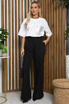 Прямые чёрные брюки — это универсальная базовая вещь, которая станет отличным дополнением к любому образу! Их элегантный силуэт, застроченные стрелки и разрезы по боковым швам добавляют им оригинальности и современности. Эти брюки подойдут как для деловых встреч, так и для повседневных выходов. В них вы будете выглядеть элегантно и чувствовать себя комфортно в любой ситуации.