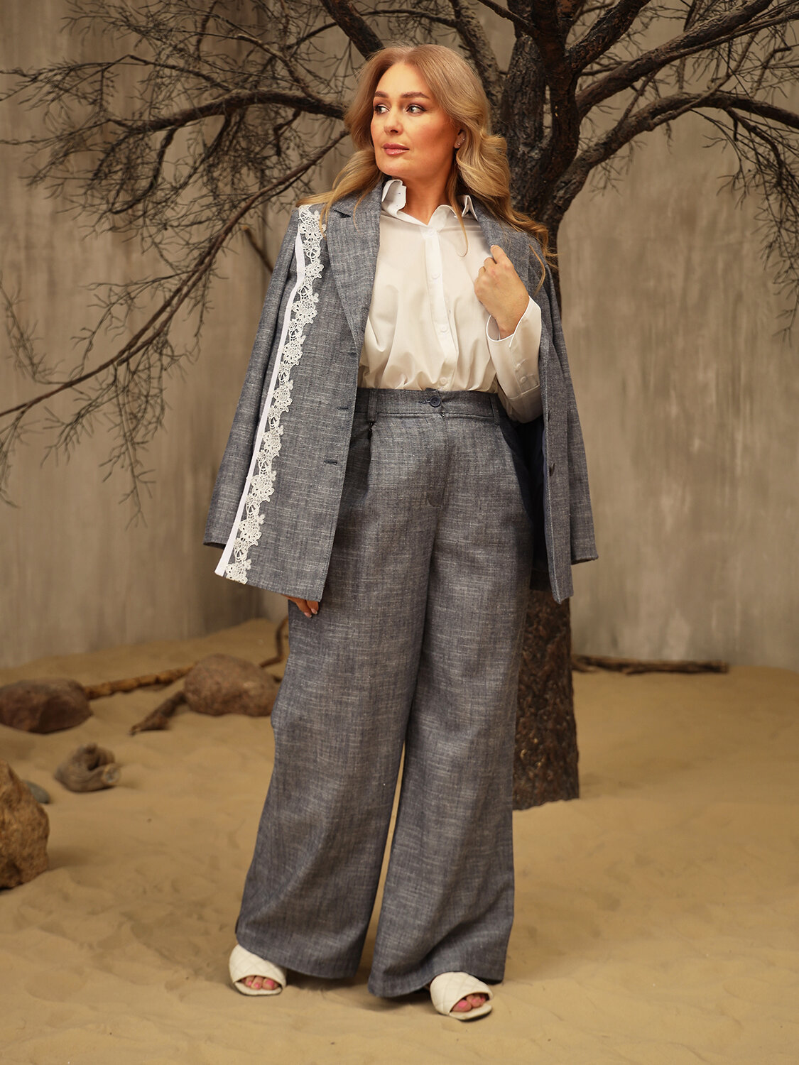 Пиджак женский от российского бренда D'imma- идеальный выбор для стильных женщин Представляем вашему вниманию удивительный пиджак женский слегка приталенный , который станет настоящей находкой для каждой женщины, стремящейся создать элегантный и модный образ. Этот пиджак не просто одежда, это воплощение стиля, уверенности и комфорта. Удлиненный крой и прямой фасон делают его идеальным вариантом как для офисных будней, так и для вечерних выходов. Сделанный из высококачественного хлопка и льна с легкой подкладкой, этот женский пиджак отлично подходит для весеннего и летнего сезонов. Он дарит ощущение свободы, что особенно актуально в жаркие дни. Каждый элемент этого удлиненного жакета продуман до мелочей: длинные рукава обеспечивают дополнительный комфорт, а универсальный цвет легко комбинируется с различными нарядами, от кэжуал до праздничного. Особенностью модели являются гипюровая вставка также разрезы по бокам, аккуратные врезные карманы. Неважно, ищете ли вы пиджак больших размеров или стандартный, наш блейзер подойдет всем женщинам, включая подростков, которые хотят быть в тренде. В сочетании с джинсами или юбкой, он подчеркнет вашу индивидуальность и безупречный вкус. Каждая деталь этого пиджака говорит о том, что мода – это не просто одежда, а способ самовыражения. Брендовый дизайн и внимание к качеству делают его идеальным выбором для стильных женщин, которые ценят не только внешний вид, но и комфорт. Не упустите возможность обновить свой гардероб с этим модным пиджаком женским. Он станет вашим верным спутником в любом сезоне, добавляя уверенности в каждом шаге. Длина изделия: 42 р-р — 74 см; 44 р-р — 74 см; 46 р-р — 75 см; 48 р-р — 75 см; 50 р-р — 76 см; 52 р-р — 76 см; 54 р-р —77 см; 56 р-р — 77 см; 58 р-р — 78 см; 60 р-р — 78 см;