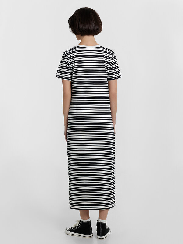 Платье свободного силуэта из футера. Платье имеет длину "миди" и удлиненную линию плеча. Изюминка модели – изящные боковые разрезы, которые очень популярны в текущем сезоне. Рукава короткие, вырез горловины круглый. Стильно!