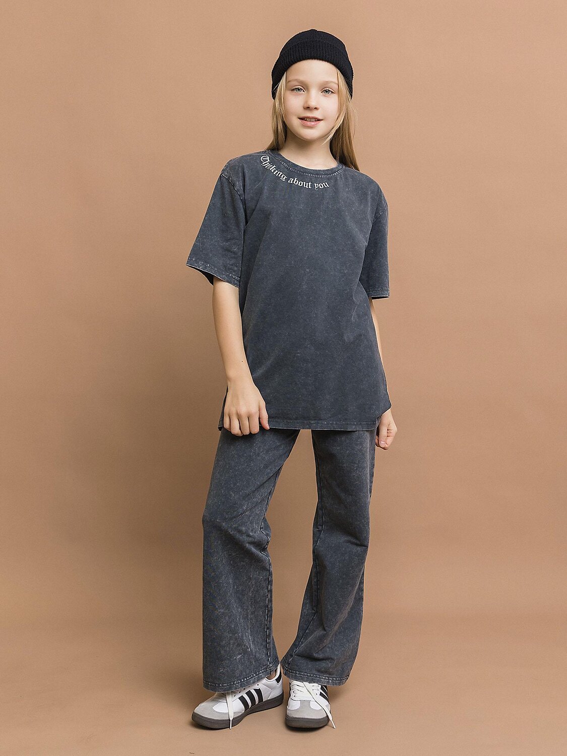 Футболка унисекс с коротким рукавом черная из вареного трикотажа. Универсальный оттенок, который подойдет и мальчикам, и девочкам. Модный вареный трикотаж – приятная на ощупь ткань с эффектом легкого состаривания. Свободный оверсайз крой дарит полную свободу движений. Стильная вышивка у горловины – лаконичный акцент, подчеркивающий индивидуальность. Легко комбинируется с джинсами, шортами и юбками.