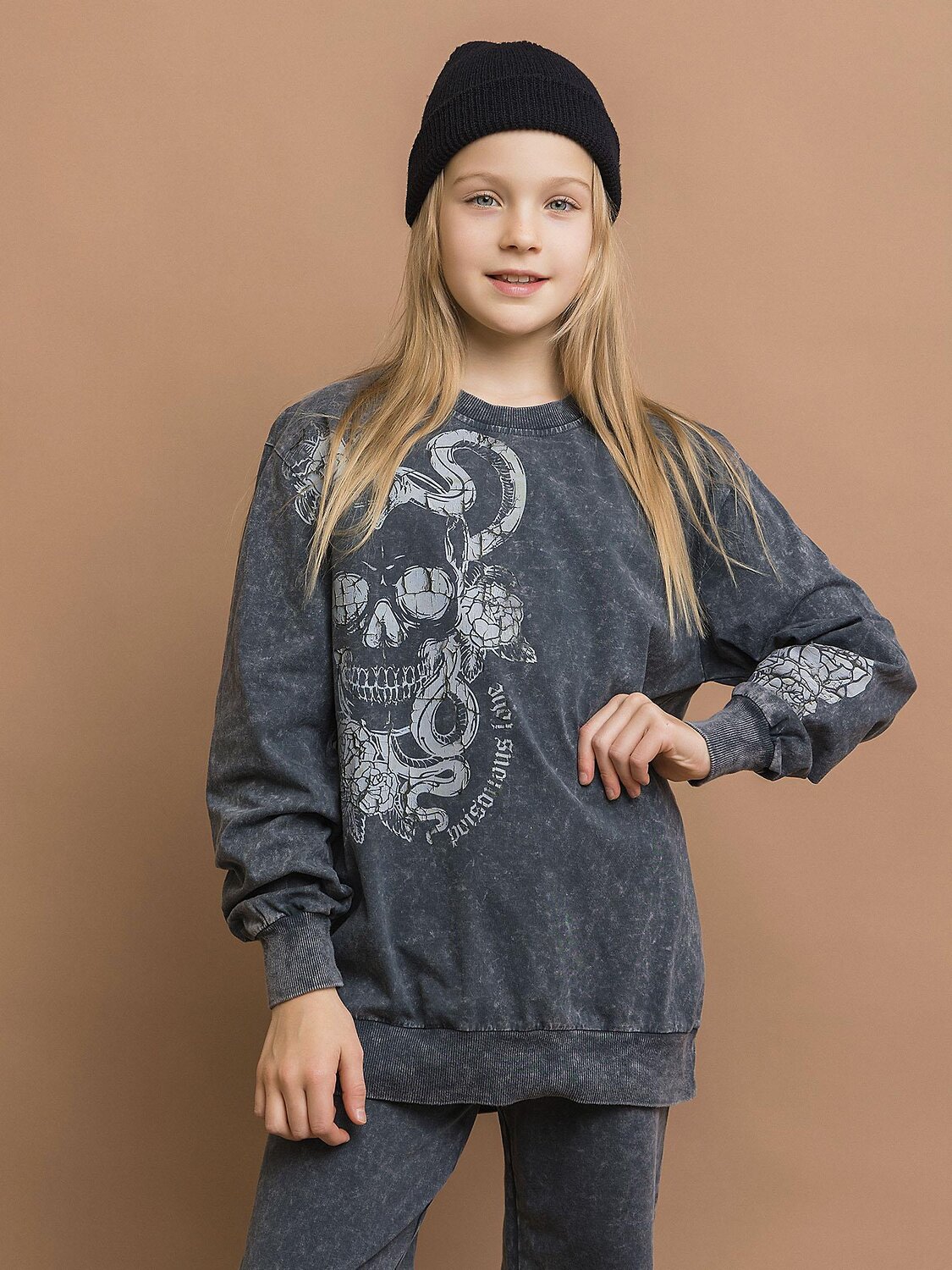 Лонгслив трикотажный унисекс из вареного трикотажа в черном цвете с модным принтом. Трендовый оттенок и принт для создания бунтарских образов. Мягкий «вареный» трикотаж – приятная текстура с эффектом легкого винтажа. Эластичные резинки на горловине, манжетах и подоле – идеальная посадка по фигуре. Подходит парням и девушкам, сочетается с джинсами, юбками и спортивными штанами. Крой легкий оверсайз.