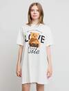Платье для девочки с коротким рукавом в молочном цвете с рисунком в виде мишки и надписями. Стильное и удобное платье на лето станет отличным дополнением к детскому и подростковому гардеробу. Выполнено в виде футболки, сочетает в себе комфорт и современный стиль.