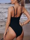 Слитный купальник, изготовленный из полиамида, выполнен в классическом черном цвете. Он плотно облегает тело, не сковывая движений и не вызывая дискомфорта. Внутри в области груди имеются съемные поролоновые чашки без эффекта Push-Up. Тонкие бретели регулируются.