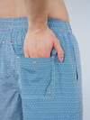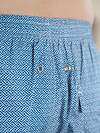 Шорты мужские пляжные, изготовленные из полиэстера, имеют широкую эластичную резинку на талии с регулирующим шнурком внутри. По бокам расположены два сетчатых кармана и один задний карман на заклёпке и с маленьким отверстием. На внутренней части шорт расположена сетчатая вставка с вырезами для ног, на задней части шорт имеются два отверстия. Шорты украшены геометрическим принтом.