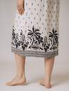 Пляжная туника, изготовленная из вискозной ткани, выполнена в классическом белом цвете. Имеет прямой свободный крой, короткие рукава и V-образный вырез в области декольте. Обхват груди регулируется шнурком. Туника украшена принтом.