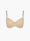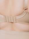 Базовый бюстгальтер изготовлен из полиамида и выполнен в бежевом цвете. Тонкие бретели регулируются. Поролоновые чашки без дополнительной поддержки груди выполнены на косточках.