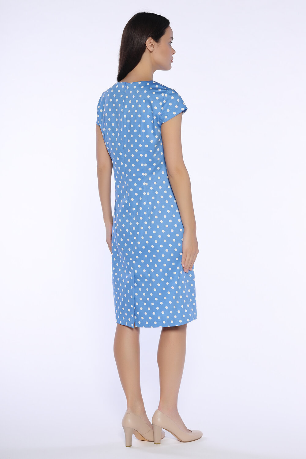 Платье миди с коротким рукавом. Если Вы ищите стильное и удобное офисное платье на летний сезон, Вы его нашли. Деликатный округлый вырез, короткий рукав и строгая длина миди позволят Вам чувствовать себя элегантно и комфортно. На задней части платья шлица, благодаря которой платье не будет стеснять движений при ходьбе. Приталенный крой платья миди подчеркнёт достоинства Вашей фигуры. В составе платья полиэстер 50%, вискоза 50%. Вырез горловины - округлый. Рукав короткий. Рукав втачной. Вид застёжки - молния. Длина миди. Конструктивный элемент - шлица. Крой приталенный. Без карманов. Рекомендована стирка при температуре не более 30С. Лаконичное однотонное платье миди в благородных оттенках идеально подойдет для деловой встречи, прогулки или романтической встречи. Дополните свой образ любимыми украшениями. Обувь подбирайте на высоком или на низком ходу, исходя из личных предпочтений и повода. Завершите образ деликатной сумочкой контрастного цвета.