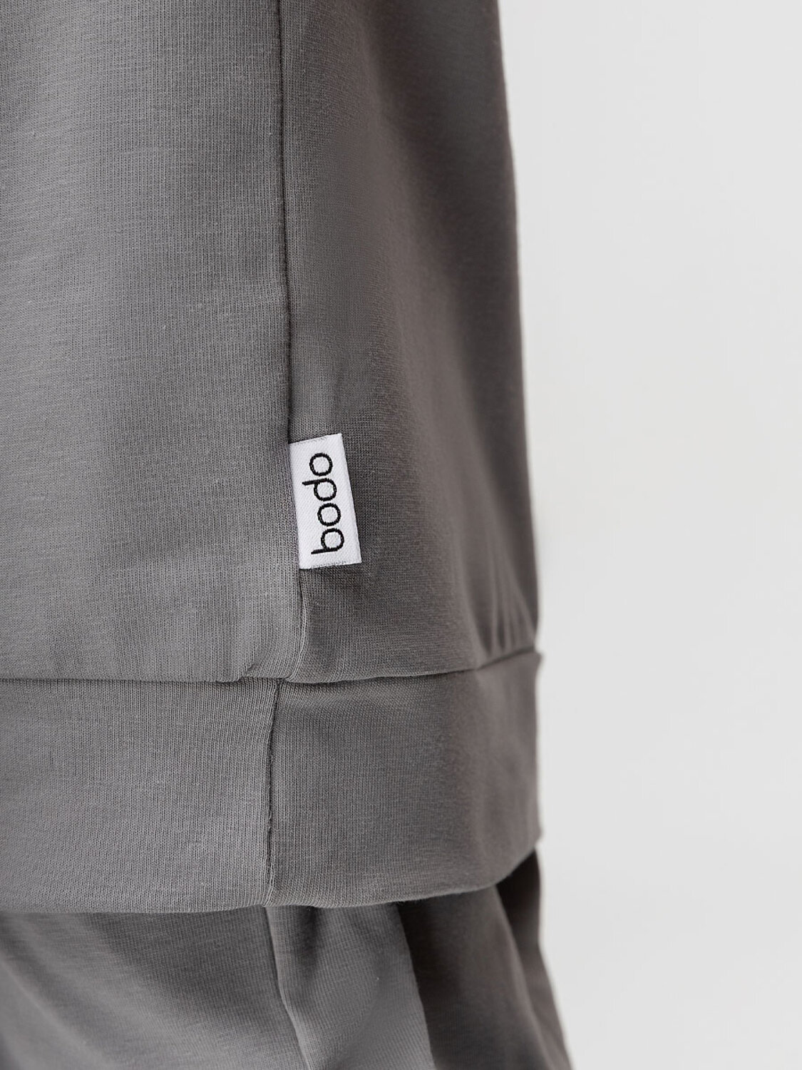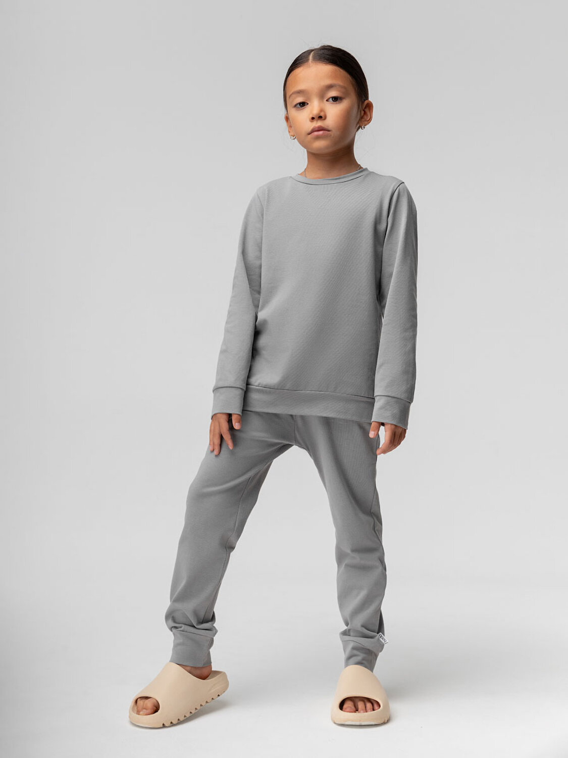 Детский трикотажный костюм. Свитшот без застежек, округлый вырез горловины, свободный покрой, длинный рукав. Брюки-джоггеры, низ на манжетах, по бокам карманы с отрезным бочком. Состав: кулирная гладь 92% хлопок 8% лайкра