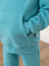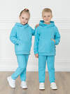 Назначение: детский комплект одежды для занятий спортом, прогулок и дома для мальчиков и девочек. Свойства ткани: прочный, мягкий на ощупь, приятный к телу, тёплый флис. Удерживает тепло и согревает даже во влажном состоянии. Особенности модели: детский флисовый костюм. Брюки на резинке в поясе, манжеты на штанинах. Толстовка с капюшоном и карманом-кенгуру. Низ и рукава на манжете. Костюм сшит в однотонном бирюзовом цвете.