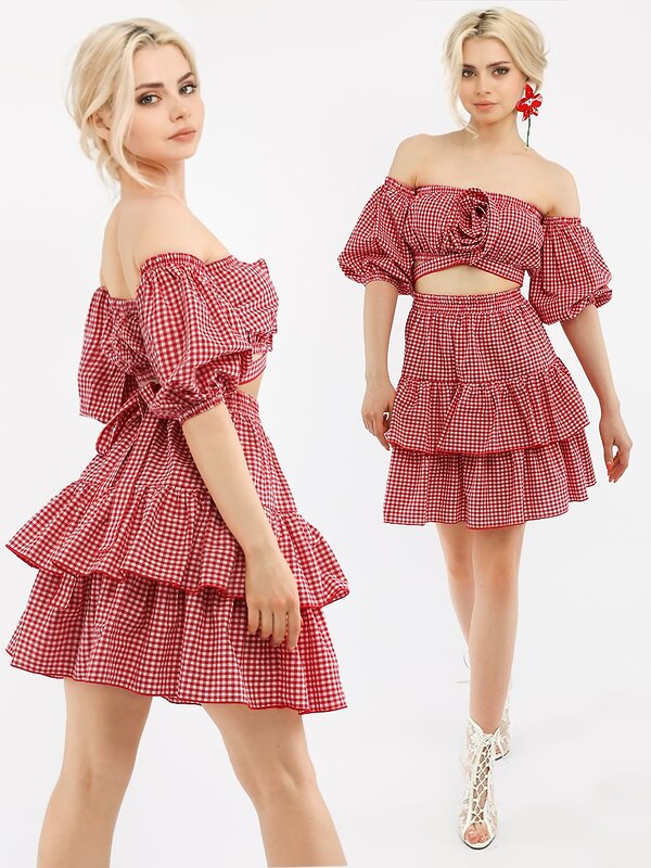 Размер 44 длина топа 18 см, ОГ 74-86 см, длина рукава 30 см, длина завязок 98 см, длина юбки 48 см, ОТ 64-68 см.