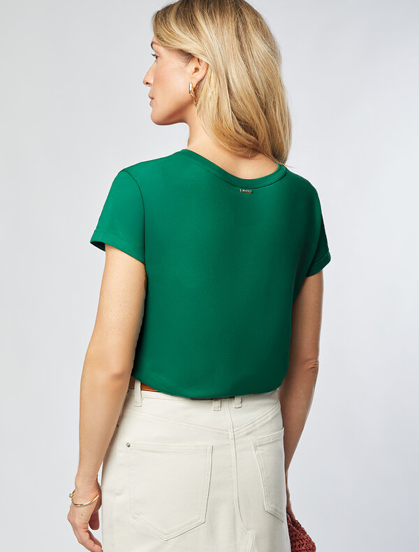 Футболка выполнена из премиального хлопка с эластаном. Авторский принт нанесен красками с устойчивым покрытием. Модель среднего объема дополнена подворотами на рукавах. Легко впишется в повседневные аутфиты и добавит акцента в образы. Изделие дополнено металлическим логотипом бренда.