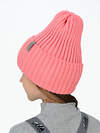 Детская вязаная теплая шапка для девочки. Свойства ткани: мягкая, плотная и тёплая пряжа с мериносом. Особенности модели: детская шапка с отворотом. Цвет однотонный розовый (фламинго), спереди эмблема.
