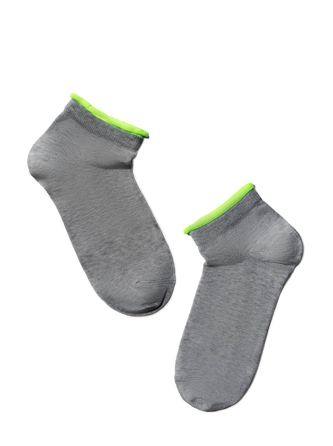 Укороченные спортивные женские носки из хлопка, однотонные с контрастной декоративной отделкой по краю резинки.