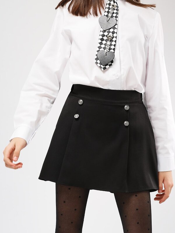 Юбка-шорты для девочки Соль&Перец сшита из прочного материала габардина, который состоит из полиэстера и вискозы, что обеспечивает долговечность и износостойкость изделия. Удобный широкий пояс с вшитой сзади резинкой обеспечивает комфортную посадку, а потайная застёжка на молнию сбоку облегчает процесс надевания и снятия юбки. Такая вещь непременно подчеркнет индивидуальный стиль юной модницы, и разнообразит ее повседневный школьный образ.