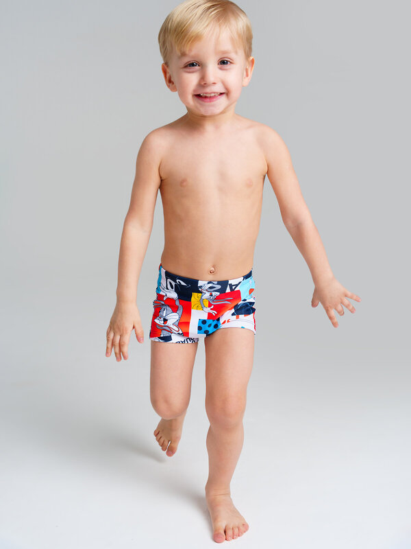 Плавки-шорты детские для мальчика. Плавки для пляжа и бассейна выполнены из быстросохнущего материала. Утяжка пояса шнурком. Благодаря хлор-защите и UF-защите ткань долго сохраняет первоначальный внешний вид.