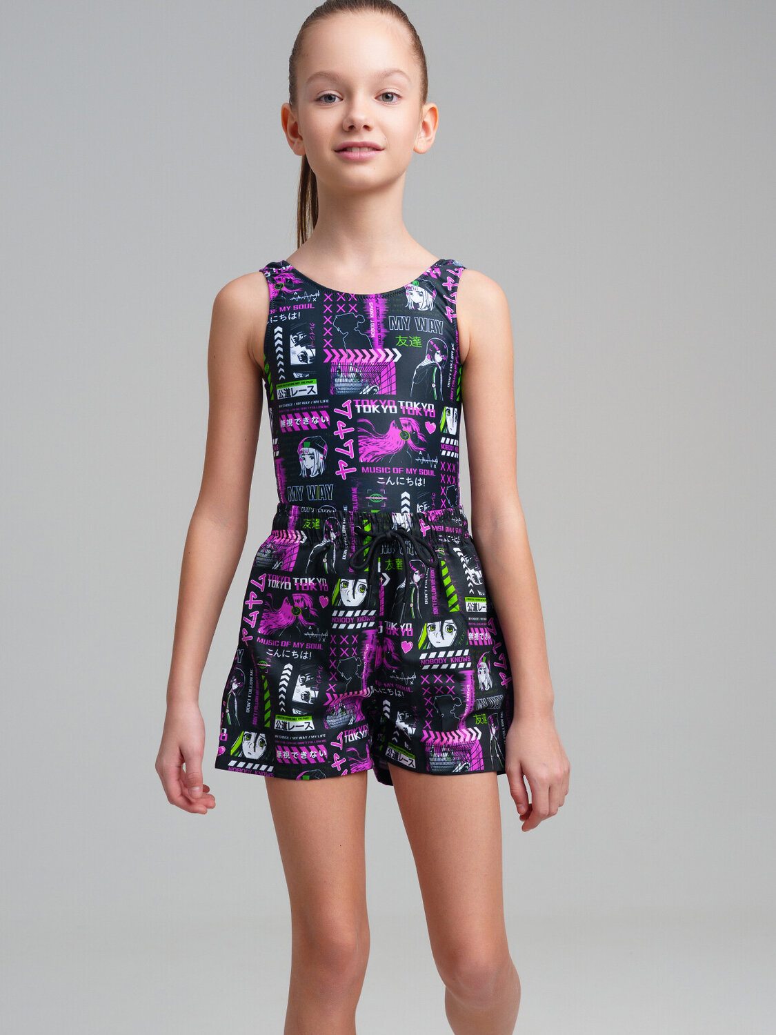 Набор для девочки подростка. Купальник слитный для девочки подростка. Купальник и шорты для пляжа и бассейна выполнен из быстросохнущего материала. Благодаря хлор-защите и UF-защите ткань сохраняет первоначальный вид даже при длительном пребывании на солнце. Плавательные шорты на резинке со шнурком.