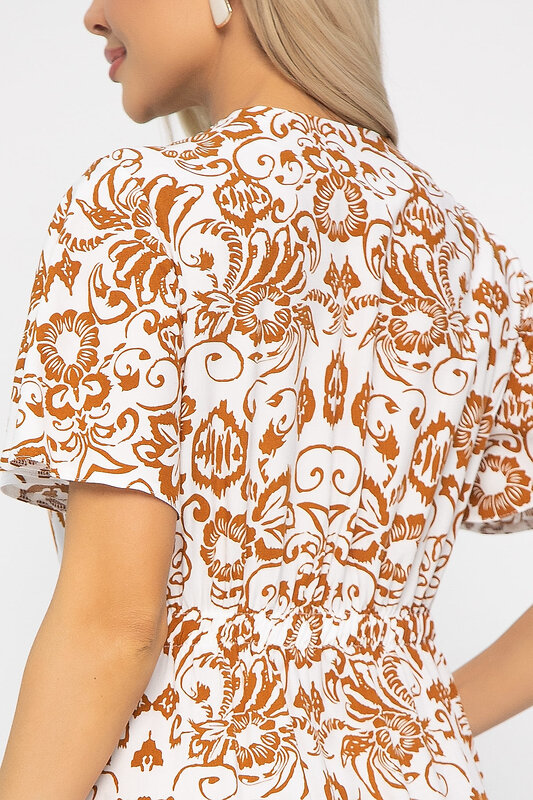 Стильное платье на пуговицах — идеальный выбор для создания элегантного и комфортного образа. Модель с V-образным вырезом, который подчеркивает линию шеи и декольте, придавая образу утончённость. Укороченные рукава добавляют легкости и свежести, а резинка по талии обеспечивает идеальную посадку и акцентирует фигуру. Это платье станет универсальным элементом вашего гардероба, подходящим как для повседневных, так и для более формальных мероприятий.