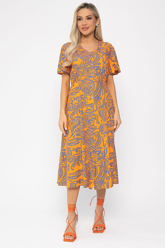 Стильное платье на пуговицах — идеальный выбор для создания элегантного и комфортного образа. Модель с V-образным вырезом, который подчеркивает линию шеи и декольте, придавая образу утончённость. Укороченные рукава добавляют легкости и свежести, а резинка по талии обеспечивает идеальную посадку и акцентирует фигуру. Это платье станет универсальным элементом вашего гардероба, подходящим как для повседневных, так и для более формальных мероприятий.