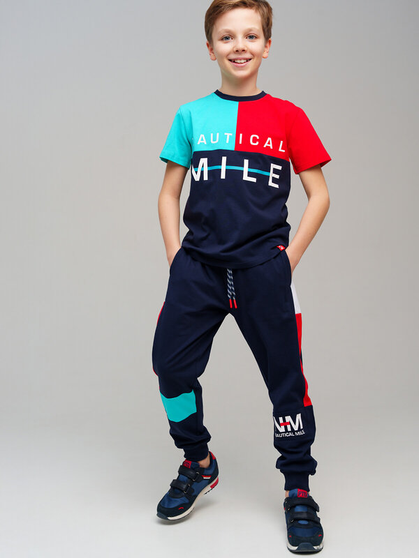 Костюм для мальчика подростка. Комплект: футболка, брюки. Высокое содержание хлопка 95%. Штаны на резинке со шнурком. Боковые карманы. Модель выполнена из качественного и приятного на ощупь трикотажа.