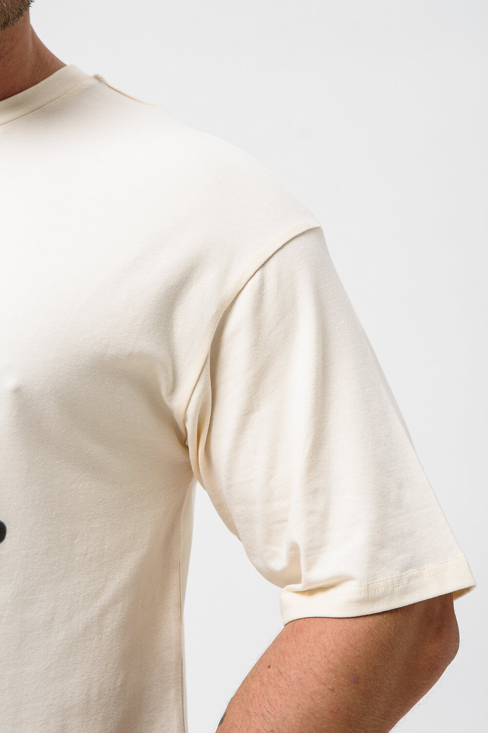Футболка прямая, средней длины, с округлой горловиной. Рукав короткий. Горловина обработана обтачкой.