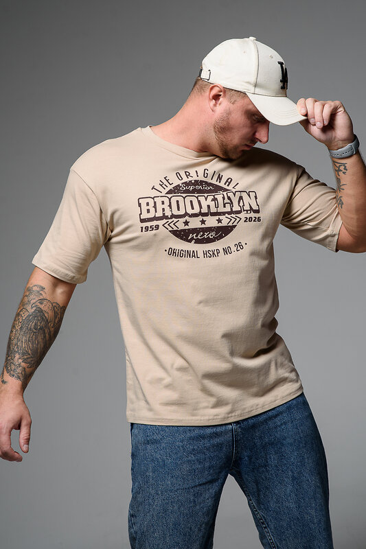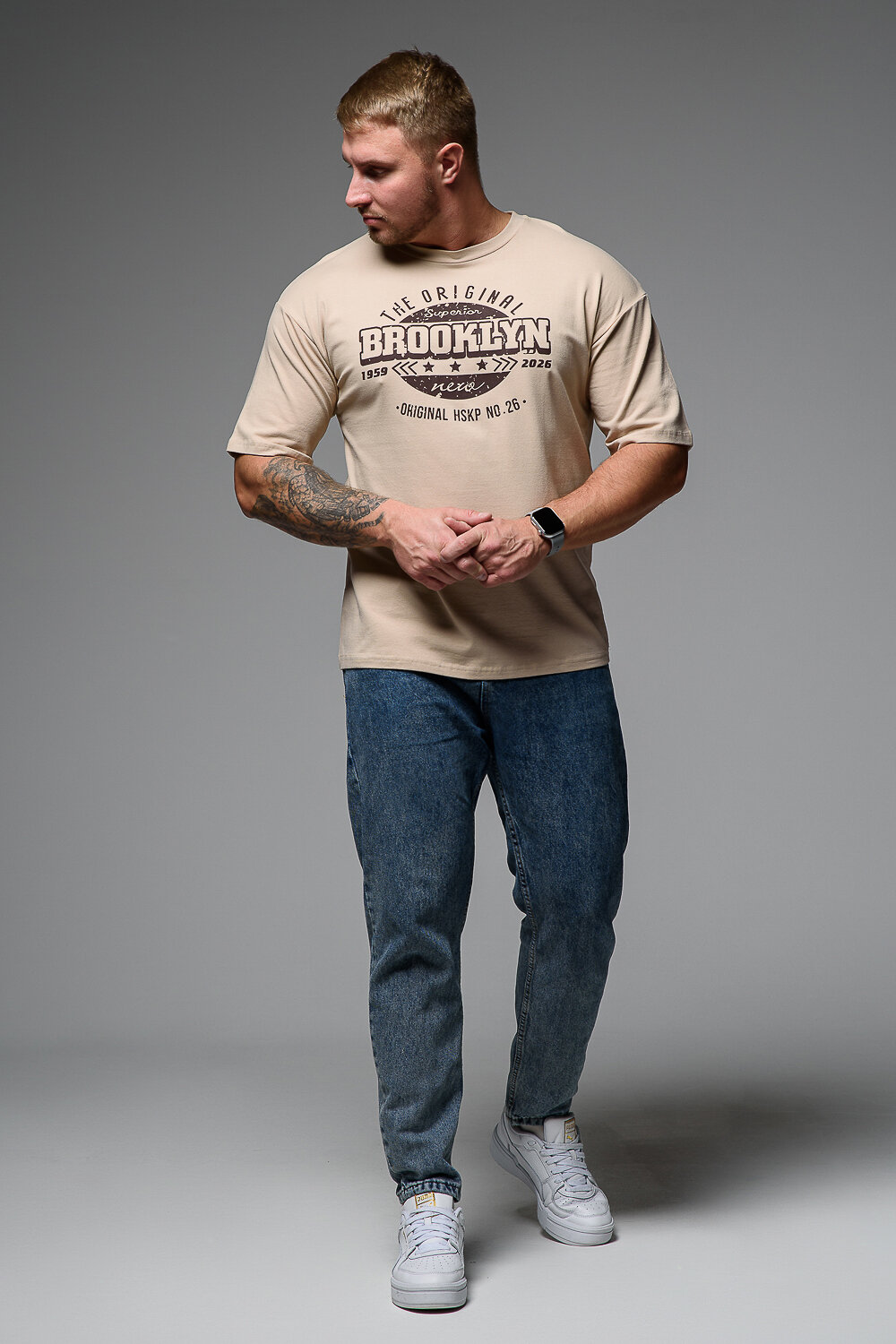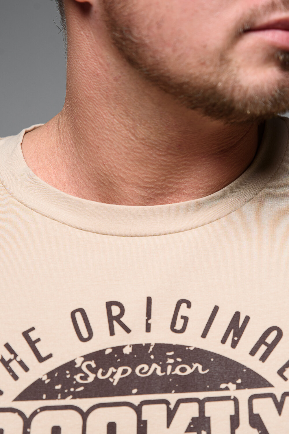Футболка прямая, средней длины, с округлой горловиной. Рукав короткий. Горловина обработана обтачкой.