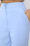 Классические брюки в голубом цвете подойдут для создания комфортного офисного и повседневного образа. Они не сковывают движений и выглядят стильно и лаконично. С брюками такого оттенка получатся стильные образы, которые будут уместны, как в повседневной жизни, так и на деловой встрече. Сзади у брюк есть резинка, карманы расположены по бокам.