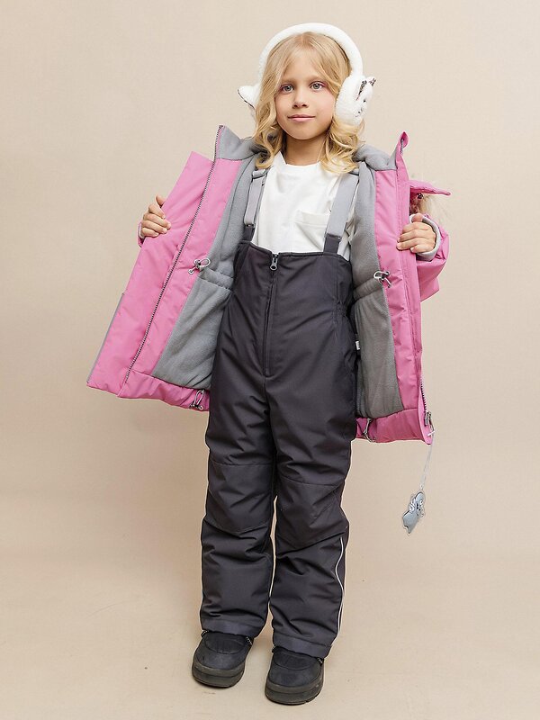 Комплект для девочки "Азалия" в нежном сочетании розового и чугунного оттенков. Такой контраст создает современный образ, сохраняя все преимущества зимнего комплекта.