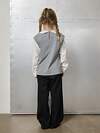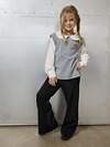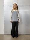 Стильная рубашка-обманка в светло-сером цвете имитирует эффект многослойности: сочетает элегантную рубашку и уютный трикотажный жилет в одной модели. Иллюзия двух изделий создает визуально интересный и стильный образ без лишних слоев. Кружевной воротник добавляет изысканности, а длинные рукава с манжетами завершают лаконичный крой. Приятный светло-серый оттенок делает рубашку универсальной для базового гардероба.
