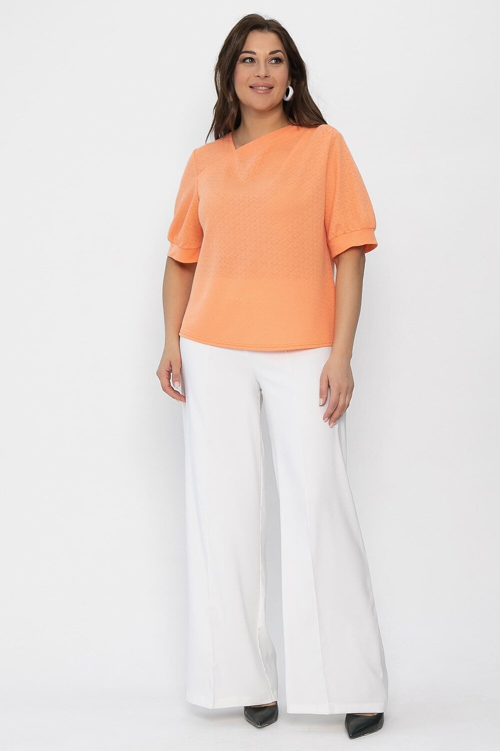 Блуза свободного кроя в оранжевом цвете станет ярким акцентом в вашем гардеробе. Асимметричный вырез горловины добавляет образу оригинальности и привлекает внимание необычным дизайном. Мягкие складки на левой стороне эффектно подчеркивают линию плеча, а рукава-фонарики создают романтичный и воздушный силуэт. Блуза прекрасно сочетается с разными низами — от юбок до брюк, подходя как для повседневных, так и для торжественных мероприятий. Добавьте эту уникальную модель в свой гардероб и подчеркните свою индивидуальность.