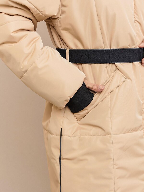 Пальто зимнее для девочки "Джул" в нежном оттенке "светлая карамель". Пастельный цвет создаёт мягкий образ, а технологичные детали обеспечивают надёжную защиту от холода.