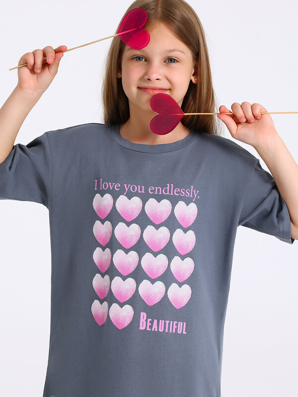 Платье Oversize из кулира - легкого хлопкового полотна. Изделие с короткими рукавами со спущенным плечом с отворотами, украшено ярким принтом. Отличный выбор для летнего жаркого дня! Уход: только машинная стирка (руками не стирать!) при температуре 40 градусов, без предварительного замачивания. Изделия с печатью и декором перед стиркой необходимо вывернуть на изнаночную сторону.