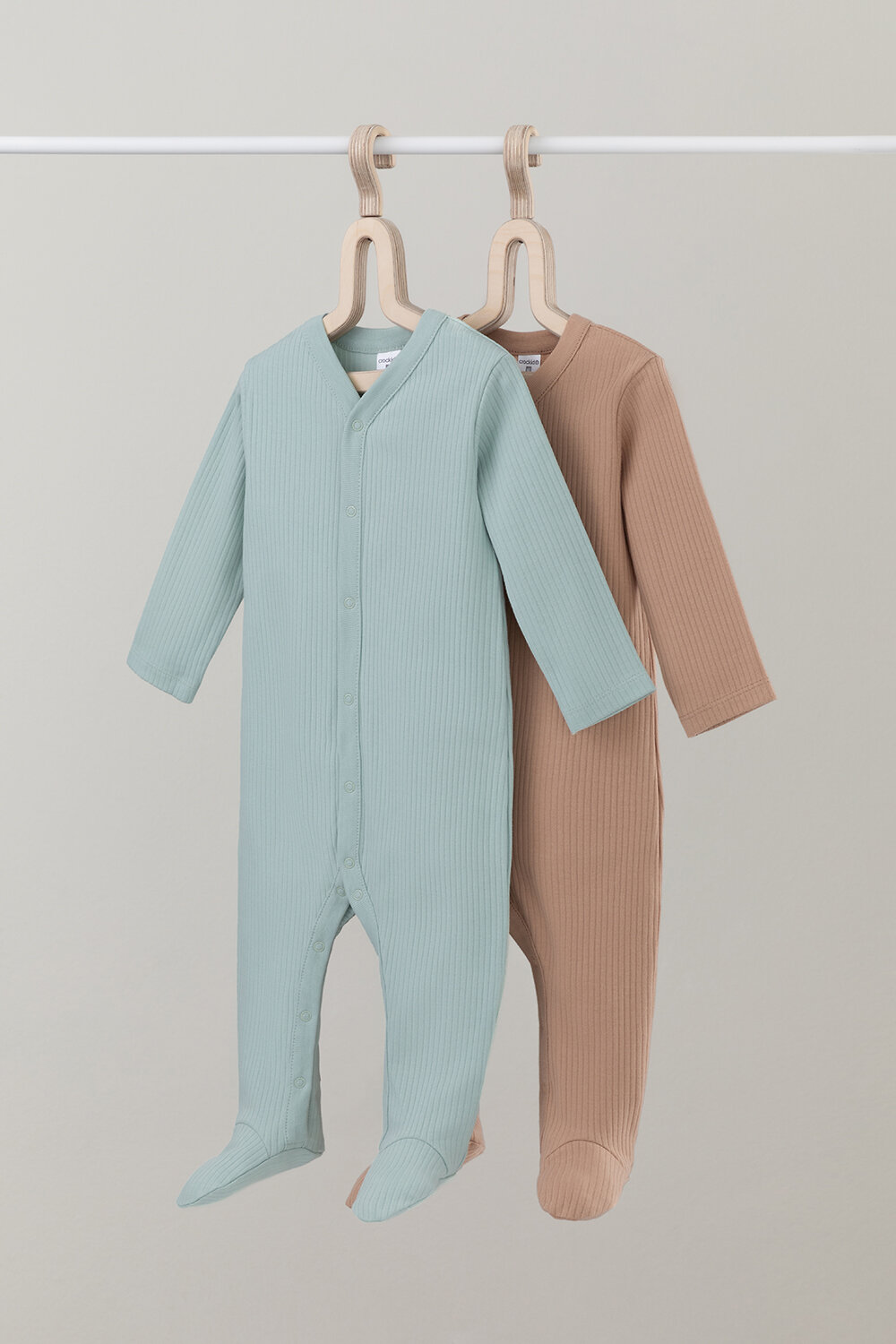 Комбинезоны для новорождённых из мягкого эластичного трикотажа, произведённого из натурального хлопка. В упаковке 2 штуки. Застёгиваются спереди на кнопки. В размере 56 на рукавах предусмотрены антицарапки, швы выполнены наружу. Все трикотажные полотна производятся в соответствии с нормами Швейцарского сертификата ЭкоТекс.